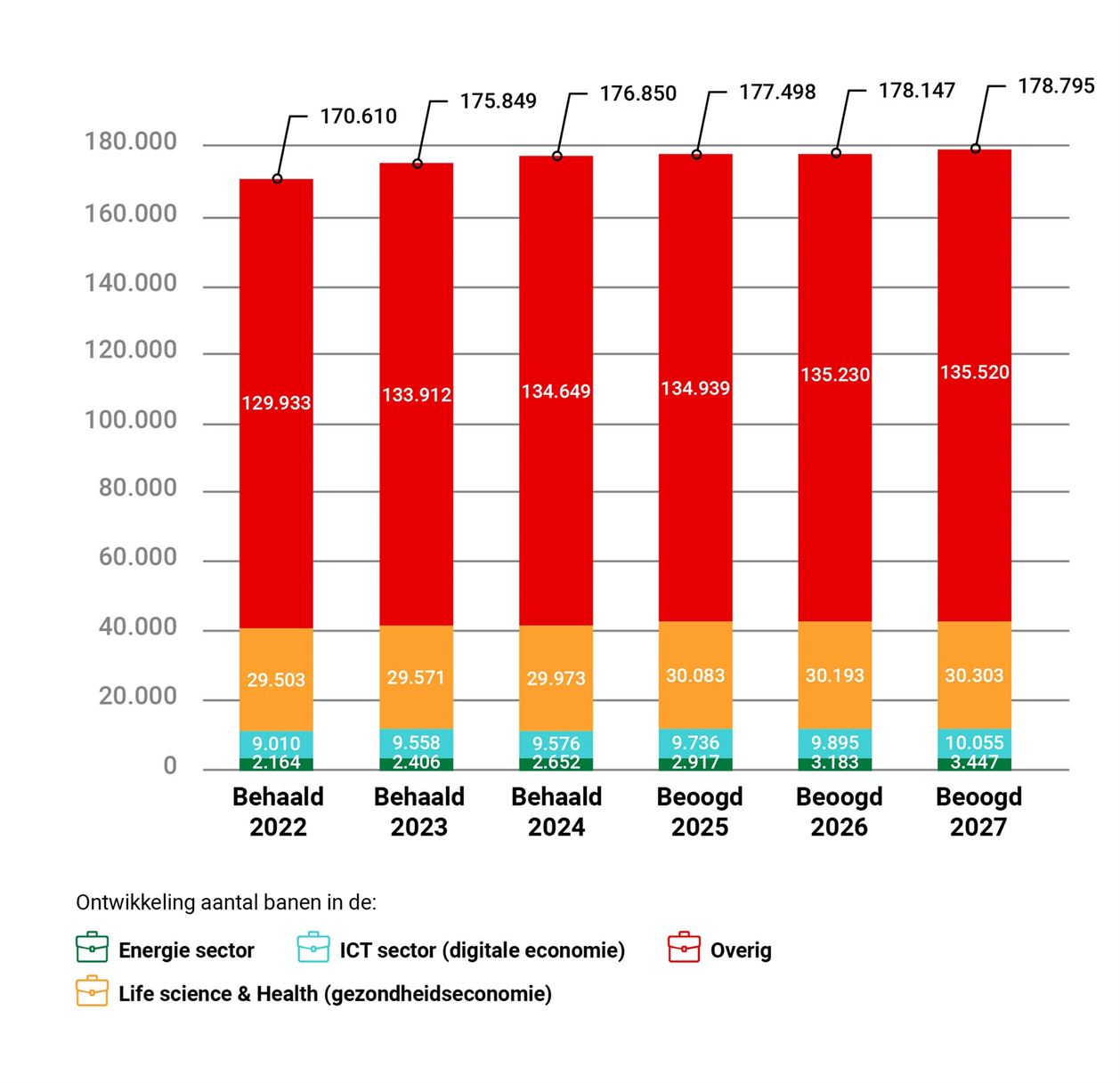 Ontwikkeling aantal banen in Life science & Health (gezondheidseconomie) |