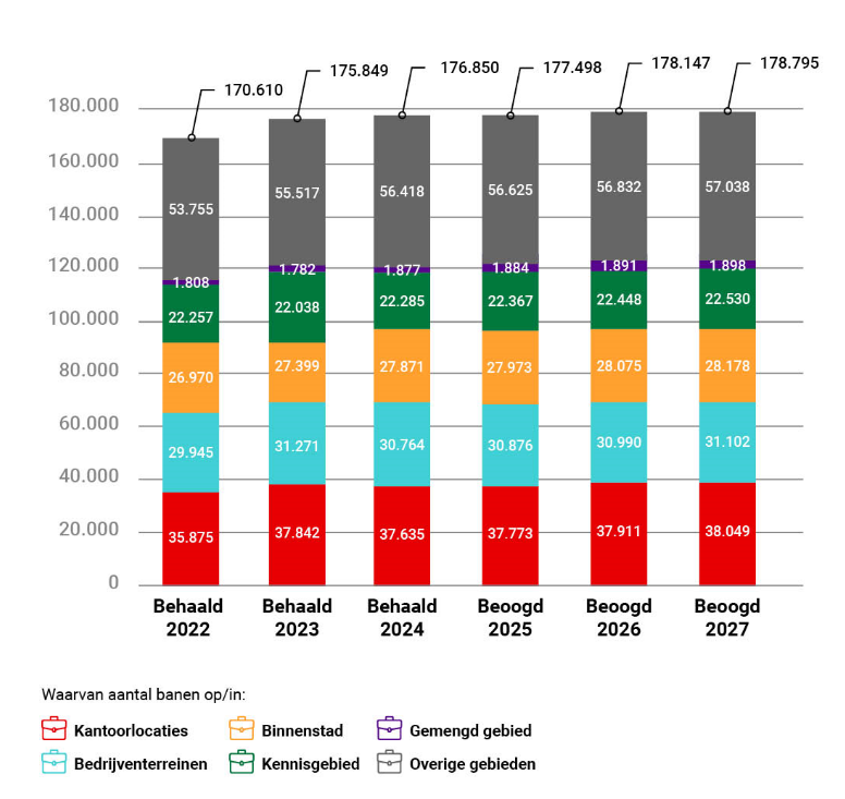De mate van economische groei hangt sterk af van de beschikbaarheid van economische randvoorwaarden. Schaarste wordt daarin een steeds grotere uitdaging. Nu de groei van het aantal banen afneemt, zwakt ook de krapte op de arbeidsmarkt iets af. Wel verwachten we ook voor 2026 een toenemende schaarste op o.a. elektriciteit, water en grondstoffen. Dit vraagt om innovatieve oplossingen en een nieuw kijk op de economie, waarin we verwachten dat lokaal ondernemerschap en korte keten aanpak een steeds belangrijkere rol gaat vervullen. Met ons vestigingskader sturen we op afgewogen keuzes bij uitgifte van onze bedrijfskavels.