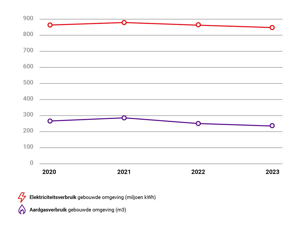 Elektriciteitsverbruik gebouwde omgeving (miljoen kWh) | 869 | 890 | 877 | 841 |